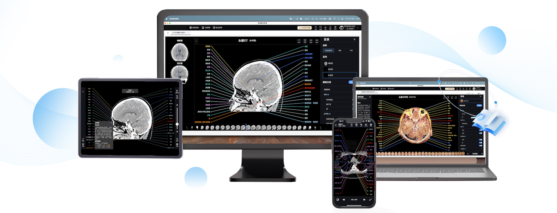 高清精准的连续解剖图,每一张详细标注相关的解剖结构名称和解释,快速提升您的诊断水平和专业技能。